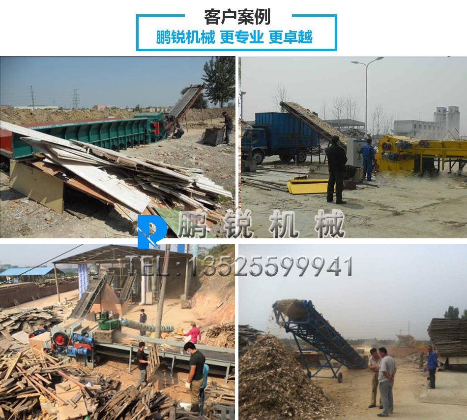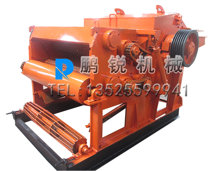 物料經輸送帶倒進板口,進板口的滾輪把廢舊模板卷入粗粉碎室,粗粉碎室里的轉子盤上安裝有錘頭,錘頭敲擊廢舊模板粗碎后經過絞龍進入細碎室,細碎室轉子上的多組錘片剪切,打擊,研磨把物料粉碎成理想的顆粒經篩網排出,顆粒的大小是有篩網控制,排出的顆粒經外置引風機抽入積料器中,添加包裝機也可以直接包裝封袋。