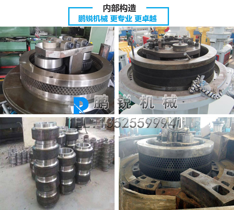 物料經(jīng)過預(yù)處理之后進(jìn)入制粒機(jī)內(nèi),通過離心力的作用,使得物料不斷地圓周運(yùn)動附著在壓模的內(nèi)壁面上,形成均勻的環(huán)形料層,而通過壓輥對付著的物料不停地旋轉(zhuǎn)擠壓,使其強(qiáng)行進(jìn)入環(huán)模孔中成型,并不斷的向外擠出)通過壓輥和壓盤不停的旋轉(zhuǎn)和擠壓,使物料隨著轉(zhuǎn)動進(jìn)入到模具孔內(nèi),經(jīng)過一定時間的保壓,達(dá)到一定的密度和強(qiáng)度的顆粒被擠出壓膜孔外,并由切刀切割成所需要的長度并推送到出料口處,物料在制粒過程中,無需添加任何化學(xué)藥劑或粘合劑。