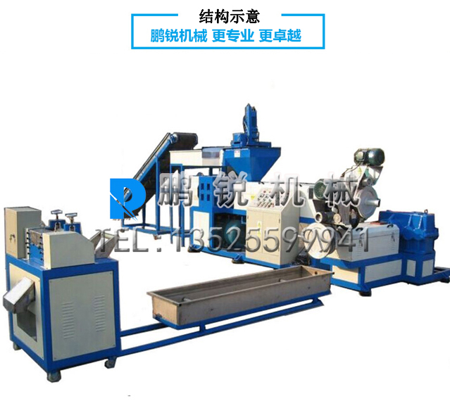 塑料造粒機設備的主機是擠塑機,它由擠壓系統、傳動系統和加熱冷卻系統組成。擠塑機按照機頭料流方向和螺桿中心線的夾角,將機頭分成斜角機頭(夾角120o)和直角機頭。機頭的外殼是用螺栓固定在機身上,機頭內的模具有模芯坐,并用螺帽固定在機頭進線端口,模芯座的前面裝有模芯,模芯及模芯座的中心有孔,用于通過芯線;在機頭前部裝有均壓環,用于均衡壓力;擠包成型部分由模套座和模套組成,模套的位置可由螺栓通過支撐來調節,以調整模套對模芯的相對位置,便于調節擠包層厚度的均勻性。機頭外部裝有加熱裝置和測溫裝置。主要用于加工廢舊塑料薄膜(工業包裝膜、農業地膜、大棚膜、啤酒包、手提袋等)、編織袋、農用方便袋、盆、桶、飲料瓶、家具、日常用品等,適用于大部分常見的廢舊塑料,是廢舊塑料再生行業用途廣,使用廣泛,受用戶歡迎的塑料再生加工機械。
