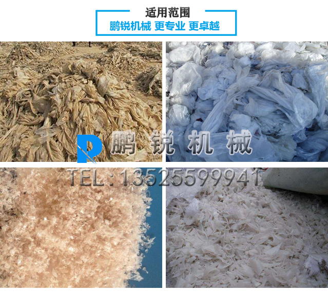 可用于廢舊塑料布、地膜、箱類、薄管件、吹塑件、瓶、殼,生活塑料用品等所有廢舊塑料的再次粉碎回收或作為注塑機的輔助機器對注塑機水口料或次品件進行重新粉碎利用。